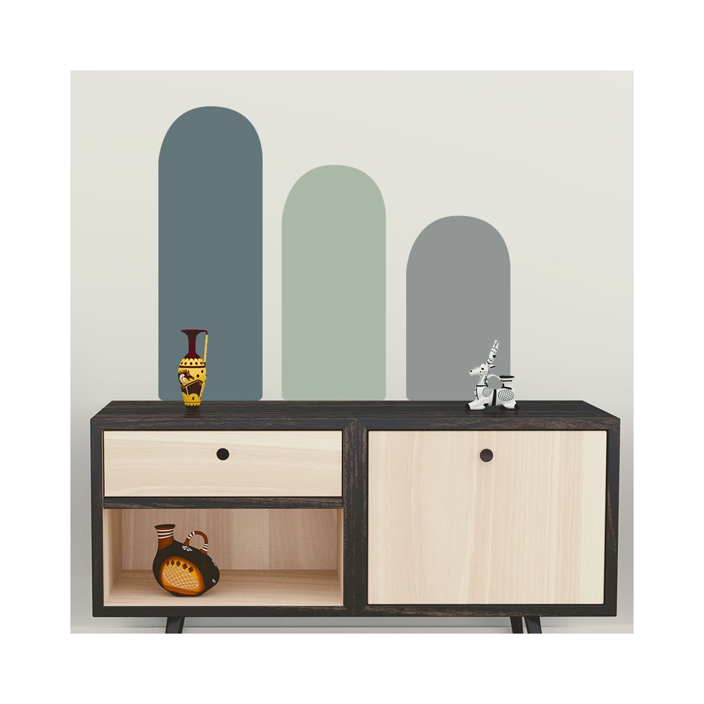 Una decoración con mucho estilo, con este vinilo estilo boho arcos de colores grises. El estilo bohemio, está más de moda que nunca y tu puedes conseguir está decoración con nuestros vinilos decorativos.